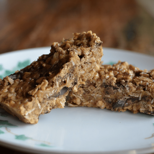 - The mixture will be crumbly. Press firmly into a 9 x 12 pan (put your had in a sandwich bag covered with a light coat of oil and use to press the granola together).